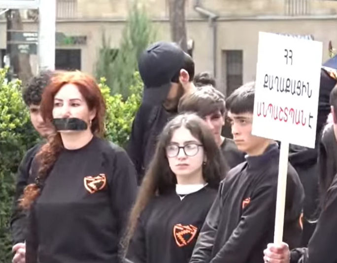 Ակցիային մասնակցող երիտասարդները խորհրդանշական քայլ են կատարել՝ կապել են իրենց ձեռքերը՝ այդ կերպ իրենց բողոքը հայտնելով դպրոցական տղայի ապօրինի կալանքի դեմ։